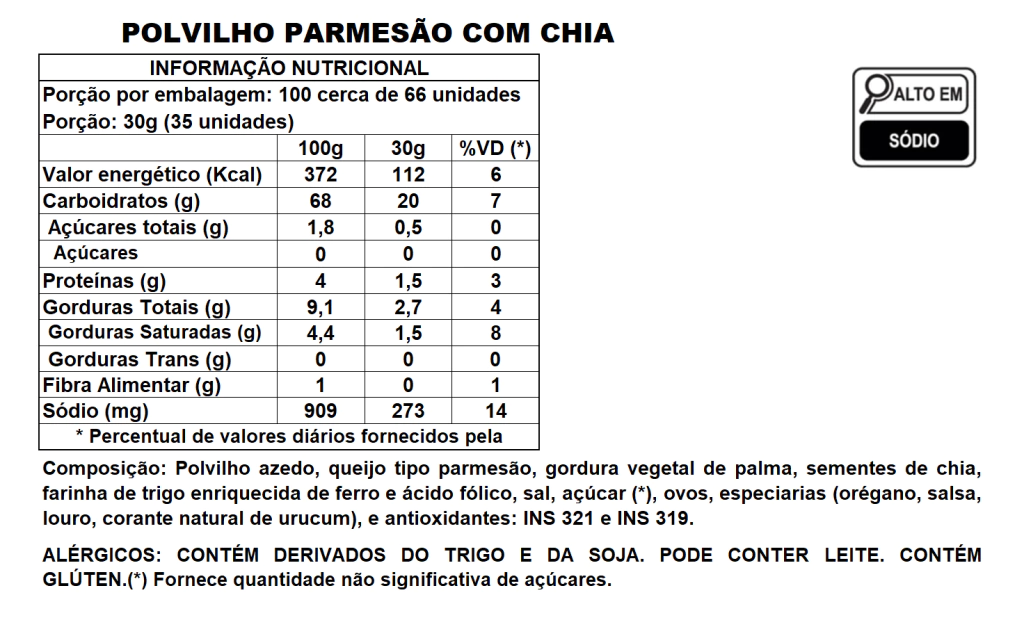 🌿 Ingredientes: Polvilho, queijo parmesão, chia, sal e temperos.